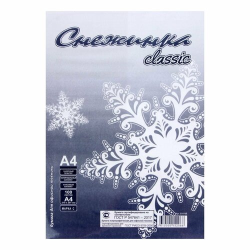 Бумага А4, 100 листов Снежинка, 80г/м2, белизна 146 проц. CIE, класс С, в т/у плёнке, цена за 100 листов