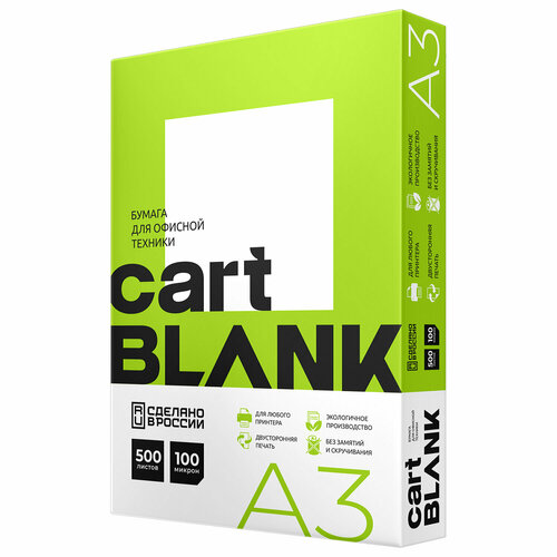 Бумага офисная большого формата (297х420), А3, 80 г/м2, 500 л, марка С, CARTBLANK, Россия, 146% (CIE)