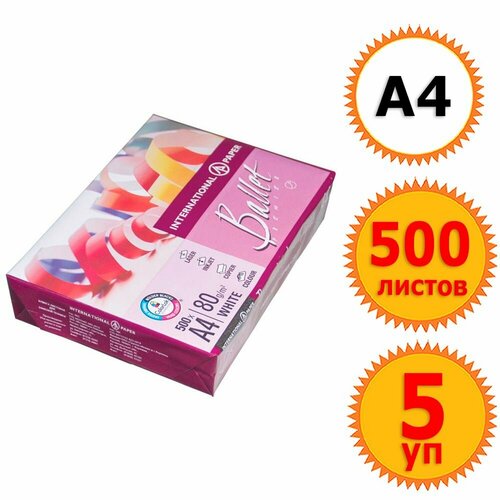 5 упаковок бумаги офисной А4, 80 г/м2, 500 л, марка A, BALLET PREMIER, Россия