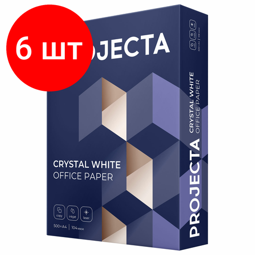 Комплект 6 шт, Бумага офисная А4, 80 г/м2, 500 л, марка В, PROJECTA, 162% (CIE)
