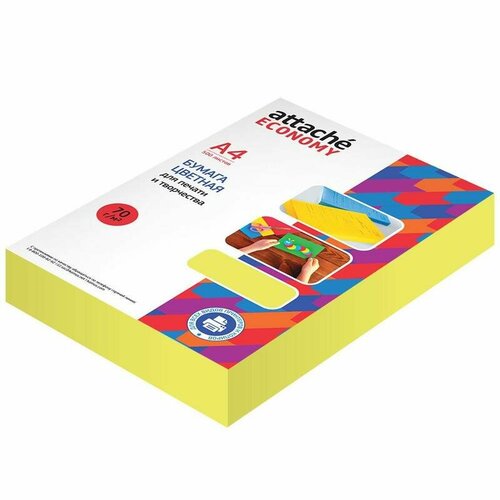Бумага цветная Attache Economy желтый интенсив, 70 г, А4, 500 листов