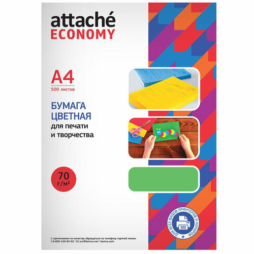 Бумага цветная Attache Economy зеленый интенсив, 70 г, А4, 500 листов