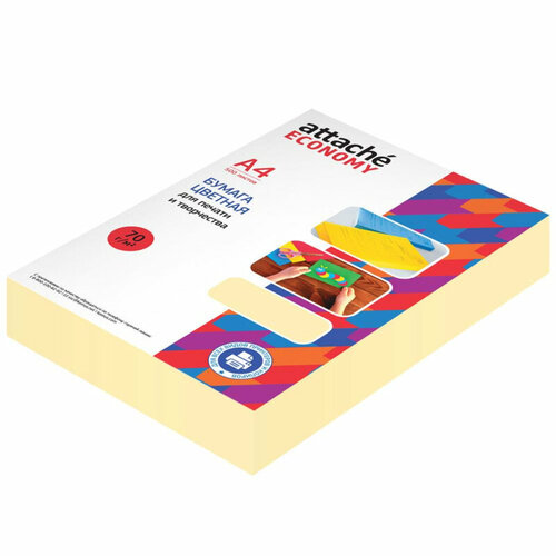 Бумага цветная Attache Economy желтый пастель, 70 г, А4, 500 листов