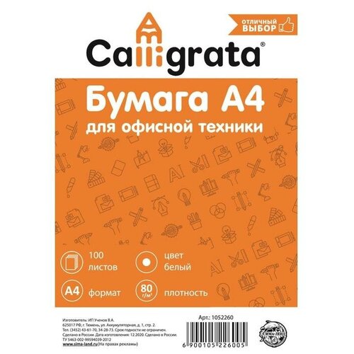 Calligrata Бумага А4, 100 листов Calligrata, 80г/м2, белизна 146% CIE, класс С, в т/у плёнке