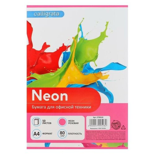 Calligrata Бумага цветная формат А4, 50 листов, неон розовая, плотность 80г/м2