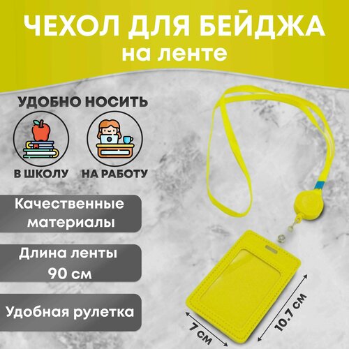 Бейдж для пропуска с рулеткой / держатель для карт/ картхолдер, желтый