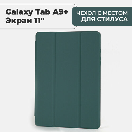 Чехол премиальный для планшета Samsung Galaxy Tab A9+ (экран 11") с местом для стилуса, темно-зеленый