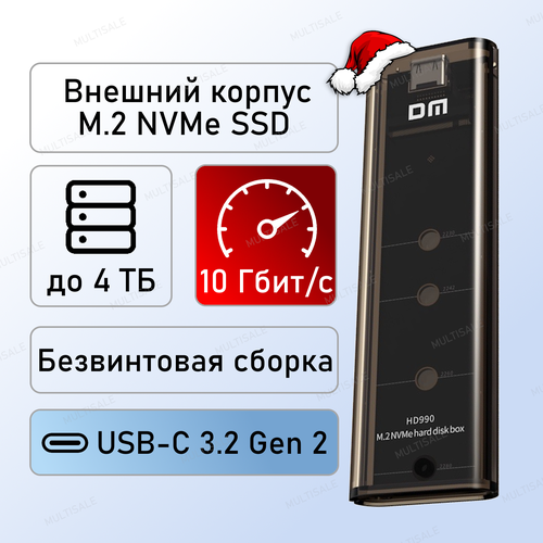 Внешний корпус DM HD990 для дисков SSD M.2 NVMe TYPE-C USB 3.2 Gen 2, прозрачный