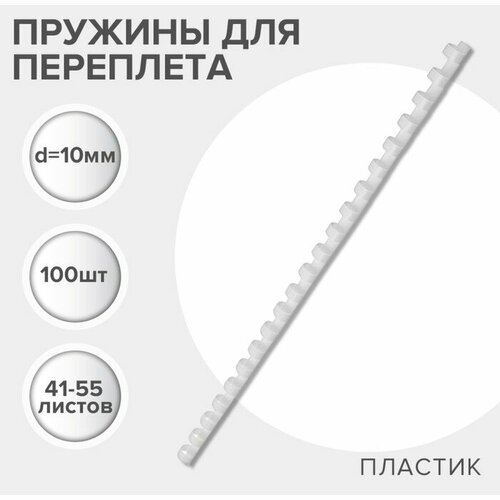 Пружины для переплета пластиковые, d-10мм, 100 штук, сшивают 41-55 листов, белые, Гелеос