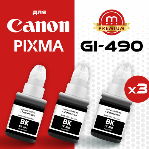 Комплект черных чернил 3шт для Canon PIXMA GI-490, краска для заправки принтера G1000 G1400 G1411 G2400 G2410 G2411 G2415 G3400 G3410 G3415 G4400 и др