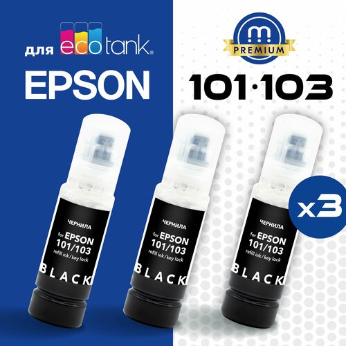 Комплект чернил 101/103 (Key Lock) 3 черных (Bk) Inkmaster для принтеров и МФУ Epson L-series L-3100, L-3150, L-3151, L-4150, L4160, L4260, L7160 и тд