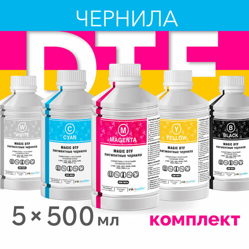 Чернила текстильные пигментные DTF, для принтеров Epson DX5, DX7, TFP, i3200/4720, для печати на ткани, 5 цветов по 500мл, Inkmaster