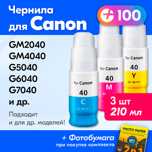 Чернила для принтера Canon Pixma G5040, G6040, G7040, GM2040 и др. Краска для заправки GI-40 на струйный принтер, (Комплект 3шт), Цветные