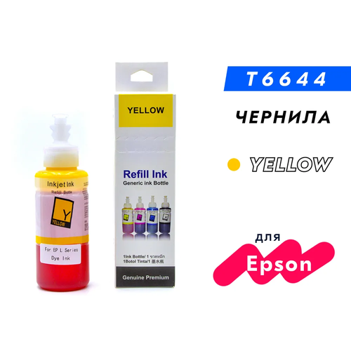 Чернила для принтера Epson T6734 (C13T67344A)/T6644 (C13T66444A), серия L: L805, L110, L132, L222, L312, L364, L366, L1800 и др., Yellow, Dye 100 мл