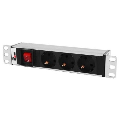 ЦМО Блок розеток Rem-10 без шнура с выкл, 3 Schuko, вход IEC 60320 C14, 10A, алюм, 10 (R-10-3S-V-220-Z)