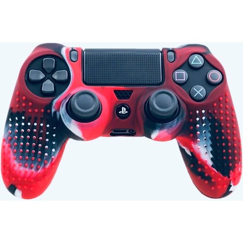 Защитный силиконовый чехол для геймпада PlayStation 4 (матовая накладка для контроллера PS4, ПС4) с рисунком красный камуфляж пупырчатый