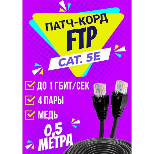 Патч корд уличный FTP 0,5 метра, категории 5е, RJ45 интернет кабель LAN / сетевой / Ethernet / FTP патч-корд