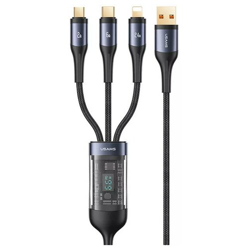 Кабель USAMS U83 3 в 1 Type-C + Lightning + MicroUSB / дисплей / тканевая оплетка / быстрая зарядка