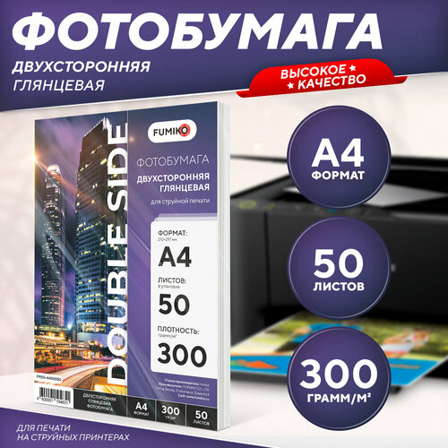 Фотобумага А4 глянцевая двухсторонняя 300 г, 50 л