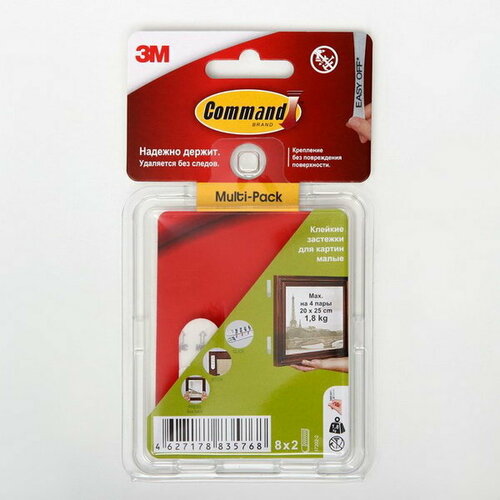 Застежки для картин Command, белые малые 8 пар