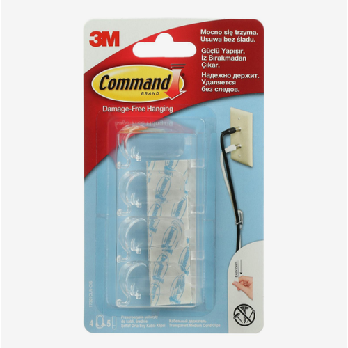 Command Легкоудаляемая клипса Command для проводов, прозрачная, средняя, 10 мм, 4 шт