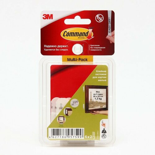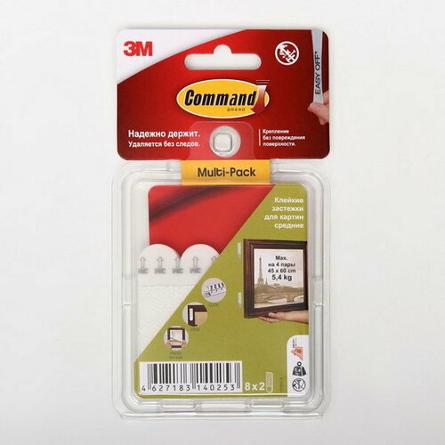 Застежки самоклеящиеся Command для картин, средние, 3 пары