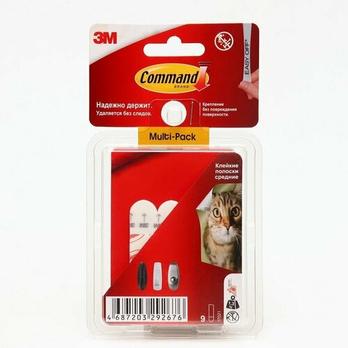 Полоски самоклеящиеся Command, средние, 9 шт (комплект из 3 шт)