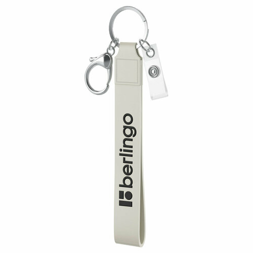 Держатель для бейджей Berlingo ID 400, силиконовый, 13см, с карабином и клипом, светло-серый (PDk_01015), 10шт.
