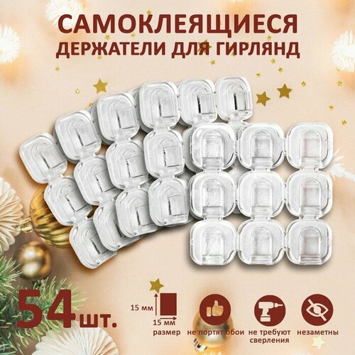 Держатель самоклеящийся для проводов и гирлянд krep, 15х15 мм, 54 шт.