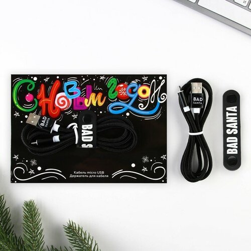 Набор держатель для провода+кабель micro USB "Чудес в Новом году", 1А, 1м