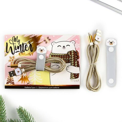 Набор держатель для провода+кабель Type-C "Winter", 1А, 1м