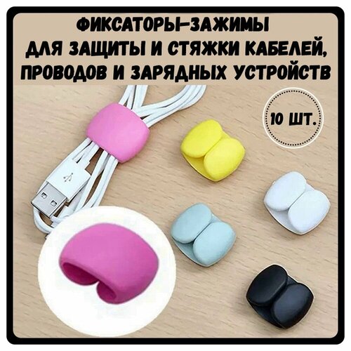 Фиксаторы-зажимы для защиты и стяжки кабелей проводов зарядных устройств/ Защита провода 10 шт.