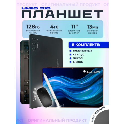 Планшет с клавиатурой и стилусом UmiiO S10, 4/128 Гб, Андроид 13, экран 11 дюймов