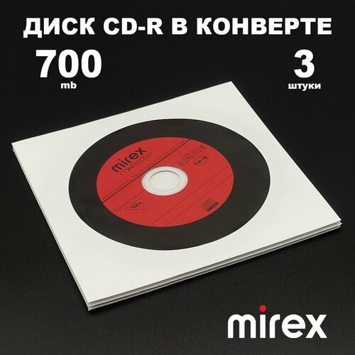 Диск CD-R 700MB 52x в конверте, 3 штуки, красный / Болванка CD-R Mirex Maestro Vinyl