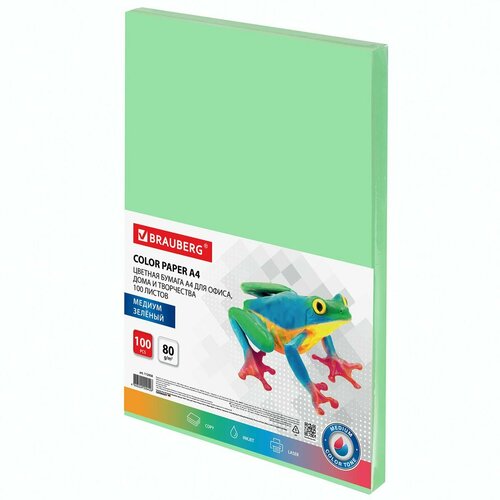 Бумага цветная А4 Brauberg, медиум зеленая, 80 г/кв. м, 100 листов (112458), 5 уп.