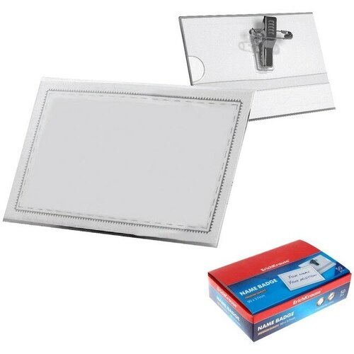 Бейдж горизонтальный 90х57мм ErichKrause, пластик, с металлическим зажимом и булавкой