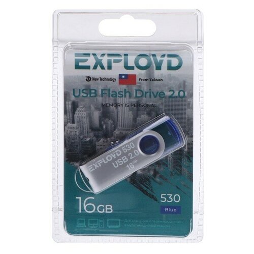Флешка Exployd 530, 16 Гб, USB2.0, чт до 15 Мб/с, зап до 8 Мб/с, синяя