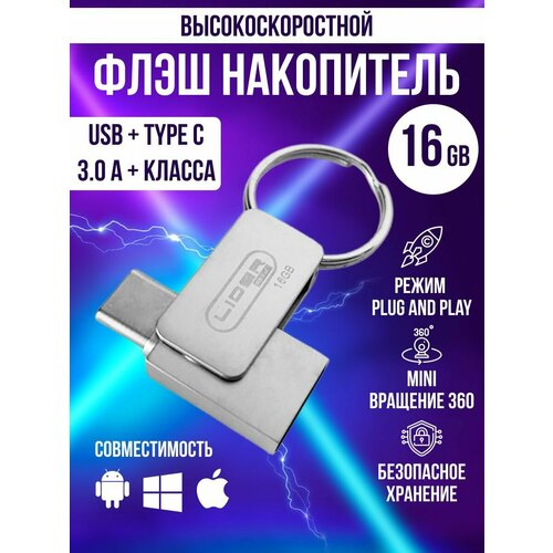 USB 3.0 флеш-диск 16GB LIDER MOBILE U-15 (USB 3.0 + Type C)