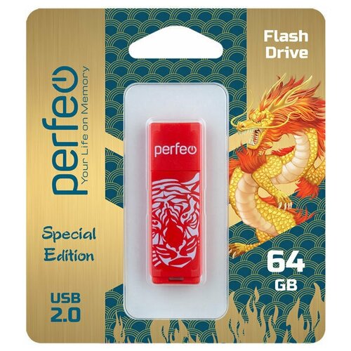 USB накопитель Perfeo с колпачком, модель C04 объемом памяти 64GB, интерфейсом USB 2.0, красного цвета имеет компактный размер. Особенность данного накопителя заключается в том, что на его корпусе присутствует изображение птицы феникс (фэнхуан) в китайском стиле. Флэшка Perfeo идеально подходит для нанесения логотипов, хранения фотографий, видеоматериалов, документов, музыки, а так же незаменима в качестве подарка или сувенира на память. Корпус накопителя выполнен из пластика и имеет отверстие для шнурка.