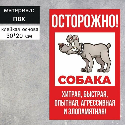 Moon Land Табличка "Осторожно собака" хитрая 200х300, клейкая основа, цвет красно-белый