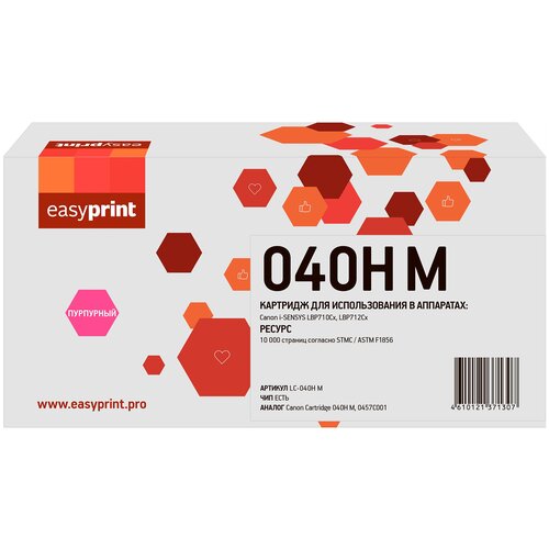 Картридж EasyPrint LC-040H M для Canon i-SENSYS LBP710/712/HP CLJ Enterprise M552/M553/577/Flow 577 (10000 стр.) пурпурный, с чипом