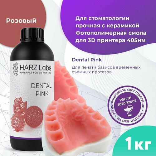 Фотополимер HARZ LABS Dental Pink для 3D принтеров LCD/DLP 1 л