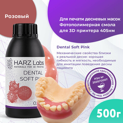 Фотополимер HARZ LABS Dental Soft Pink для 3D принтеров LCD/DLP 0.5 л