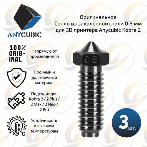 Оригинальное сопло из закаленной стали 0.8 мм для 3D принтера Anycubic Kobra 2 ( комплект 3 шт. )