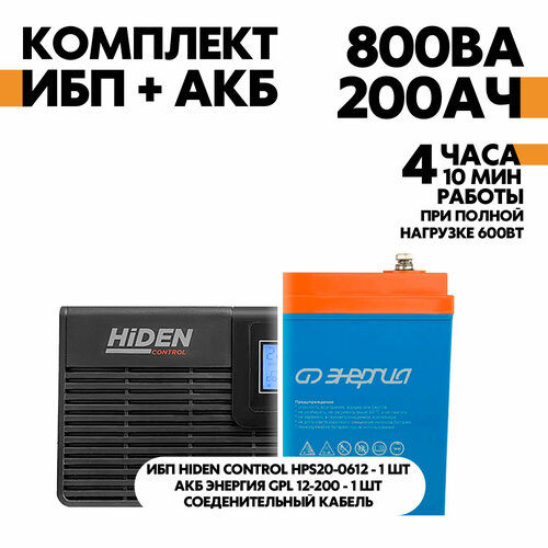 Интерактивный ИБП Hiden Control HPS20-0612 в комплект с АКБ Энергия GPL 12-200