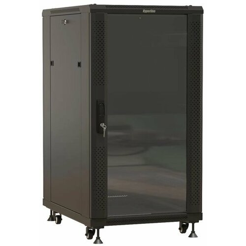 Hyperline Монтажный шкаф TTBR-4268-AS-RAL9004 Шкаф напольный 19-дюймовый, 42U, 2055x600х800 мм ВхШхГ , передняя стеклянная дверь со стальными
