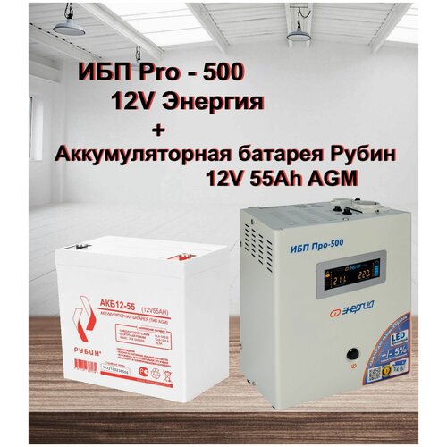 ИБП Pro- 500 12V Энергия и АКБ Рубин 12-55