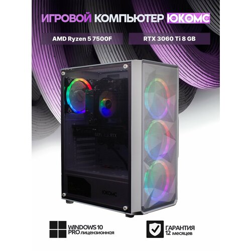 Игровой PC юкомс Ryzen 5 7500F, RTX 3060 Ti 8GB, SSD 512GB, 16GB DDR5, БП 700W, win 10 pro, White game case