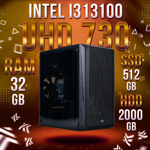 Intel Core i3-13100, Intel UHD Graphics 730, DDR4 32GB, SSD 512GB, HDD 2TB