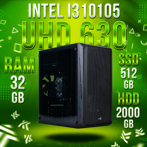 Intel Core i3-10105, Intel UHD Graphics 630, DDR4 32GB, SSD 512GB, HDD 2TB